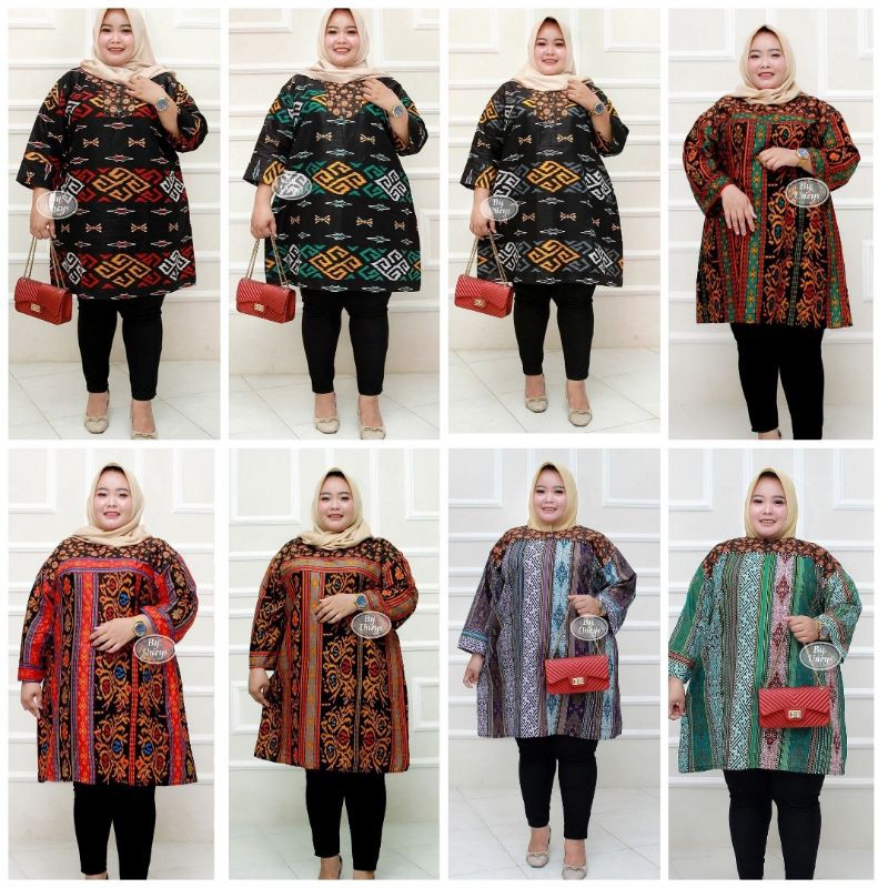 Name: Tunik Batik Motif Etnit Tenun Jumbo Atasan Wanita Ready Sampe Ld 140