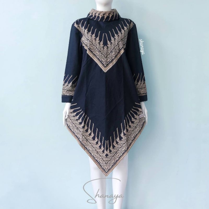 Name: Shanaya Batik Tunik Modang Asimetris Batik Printing Turtleneck Zipper Belakang Size Xs S M L Xl Xxl