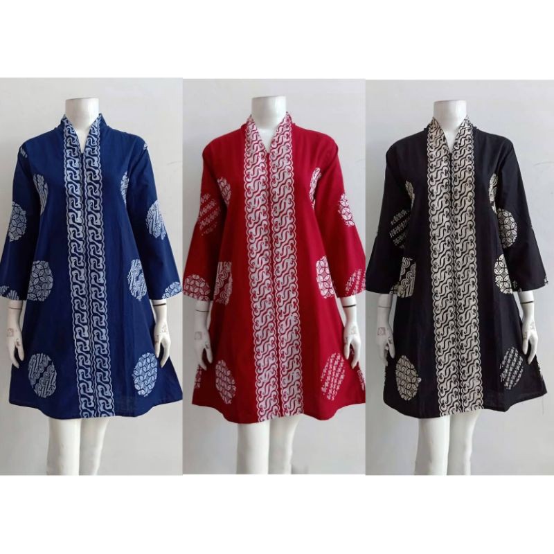 Name: Shanaya Batik Tunik Cap Koin Zipper Depan Ready Free Masker S M L Xl Xxl