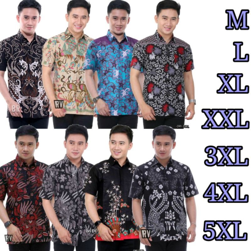 Promo Asli Berkah_batikjaya12 Batik Jumbo Hrb093 Hem Batik Pria Pendek Premium M L XL XXL 3L 4L 5L