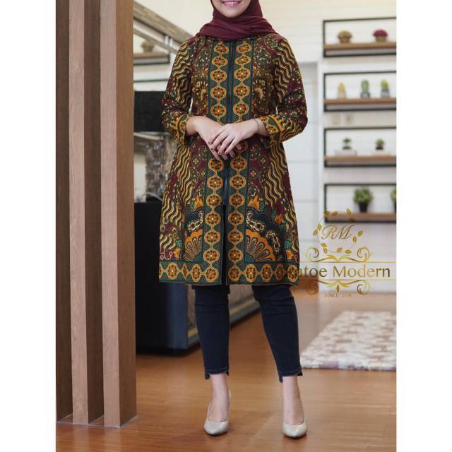 Tunik Batik Ratoe Modern kode 127 Model sleting full depan. Krah dk (bisa dipake jd cardigan) Bhn Katun batik Sinaran